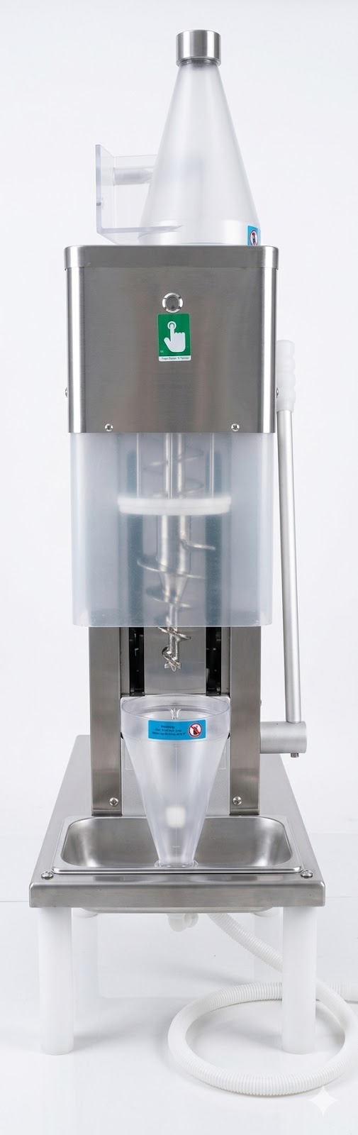 La versatilidad es el punto fuerte del Mixer, diseñada para trabajar con un tazón individual de alta resistencia que facilita la transición rápida entre diferentes sabores sin contaminación cruzada significativa. Su estructura está reforzada para soportar el uso continuo en entornos de alto tráfico, manteniendo un peso sólido de 50 kg que le otorga estabilidad absoluta durante el proceso de mezclado. Además, incluye precauciones de seguridad integradas, como la conexión a tierra del chasis y sistemas de protección para la bomba, asegurando una vida útil prolongada y seguridad total para el personal.